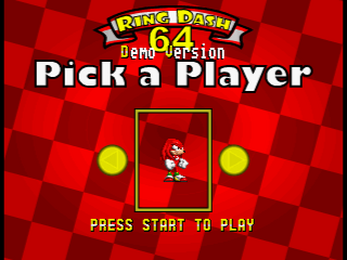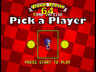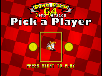 RingDash 64, is a Nintendo 64 version of the Sega Master System Game RingDash SmS. It is a maze game, where you play as Sonic, Tails or Knuckles, based on the classic Sega Mega Drive Sonic characters.
