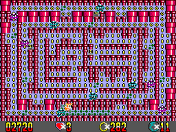 You control Sonik or Tailz, and need to collect all the rings, to clear a level. But watch out for the badbots, as they will kill you, if they capture you. On each level, there are some power ups, which you can use, when you break a powerup container, you will be invincible for a short amount of time. When Invincible you can roll over and kill the badbots. If you clear a level quick enough, you will be awarded a time bonus to your score. When your score reaches a high enough amount, you will be awarded an extra life. There are now 12 levels to play through, and there are 12 enemy types to get past and 6 themed zones. Each zone, has a light and dark theme.